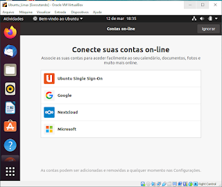 *Gente, daqui pra baixo a tela do ubuntu é tão pequenina que você verá quase que a lateral bem discreta de um botão ao lado do voltar. Este botão quase que oculto é o continuar ok? Em todas as imagens a seguir mal dá pra ver que existe um terceiro botão ali. Mas confie, você verá em sua máquina e ele é o único que quase não aparece, independentemente se a sua tela está no fullscreen ou não.